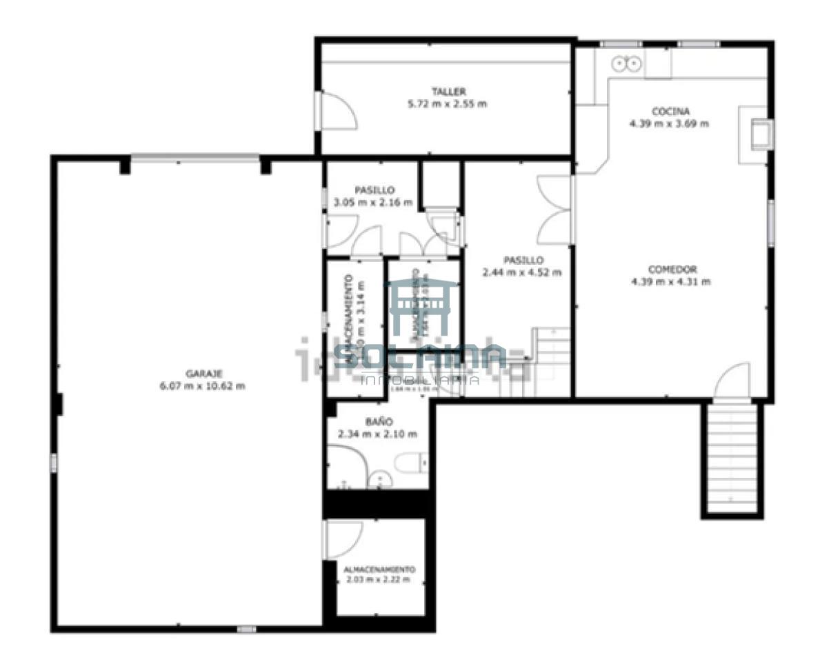 Planta baja; garaje con capacidad para cuatro coches, salón - cocina con chimenea, un baño y trastero.
