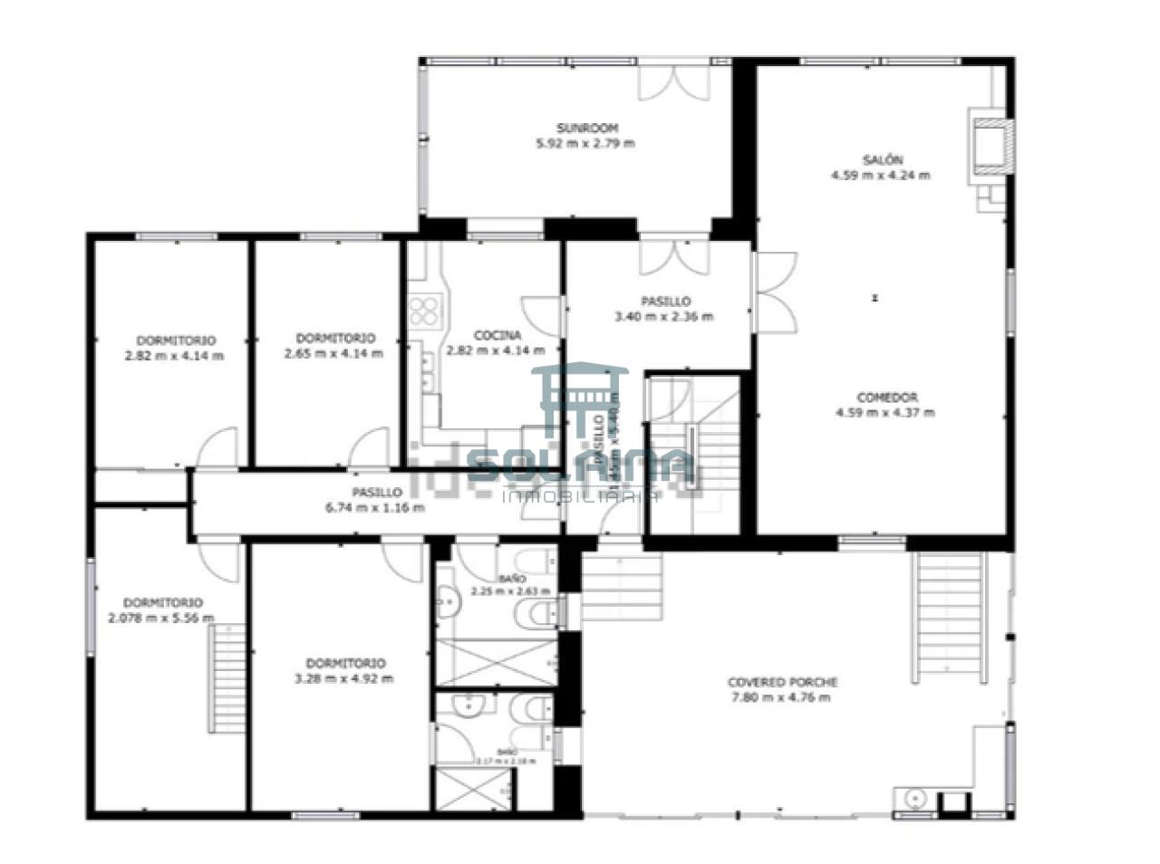 Planta principal; cuatro dormitorios, salón, cocina y dos baños.