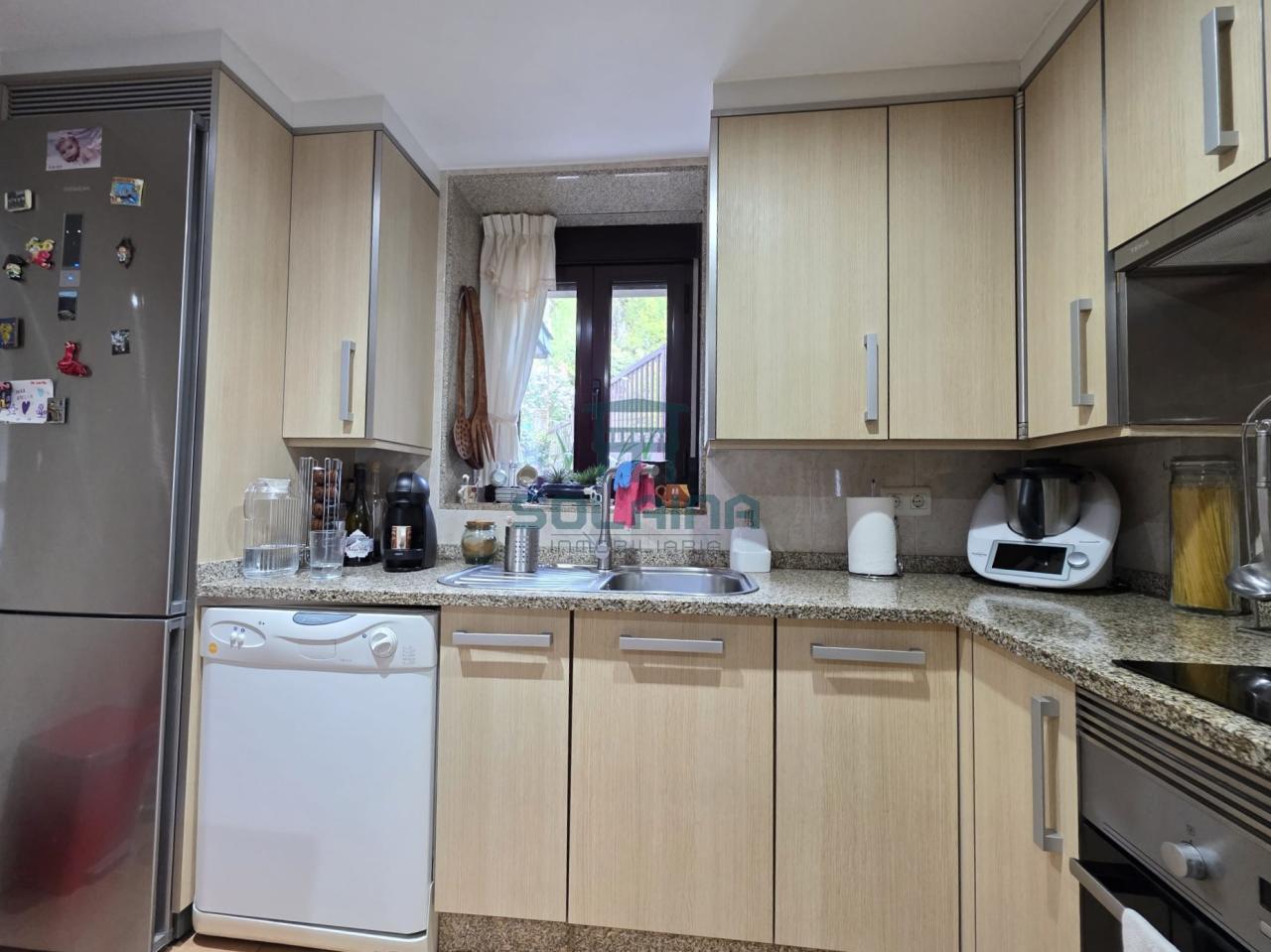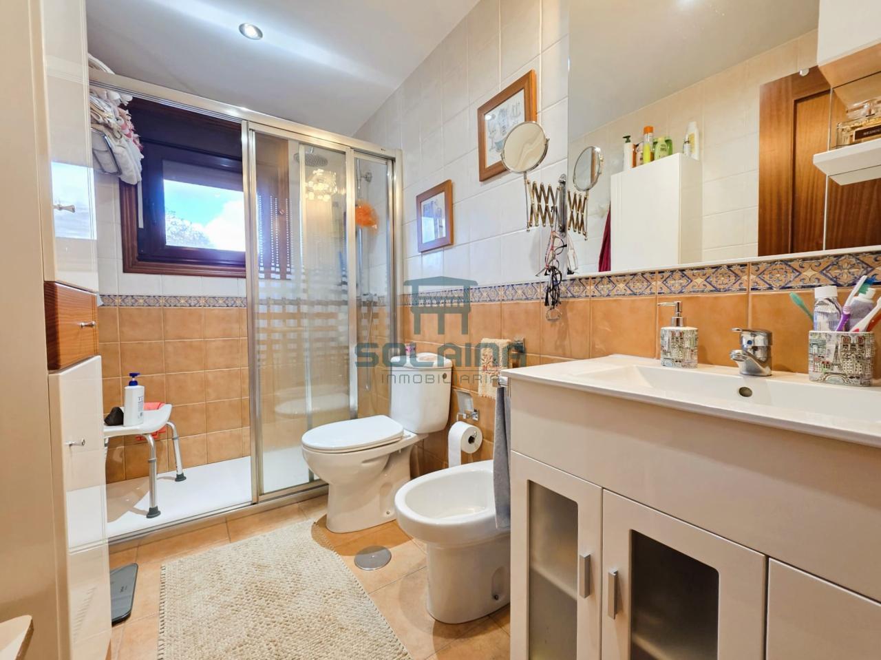 Carpintería de sapelly, suelos de parquet y gres, persianas de PVC y ventanas climalit.
