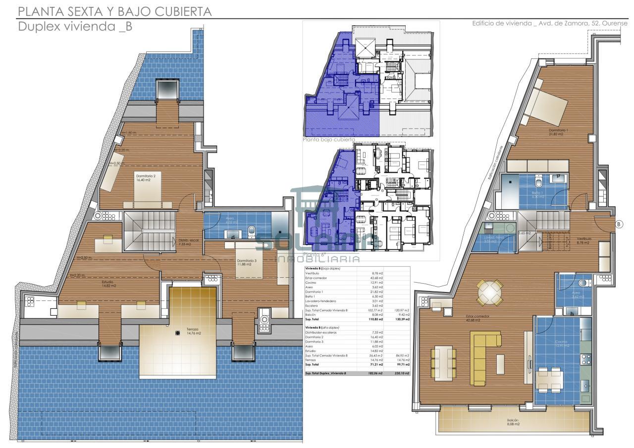 Dúplex con cuatro dormitorios, tres baños y una terraza.